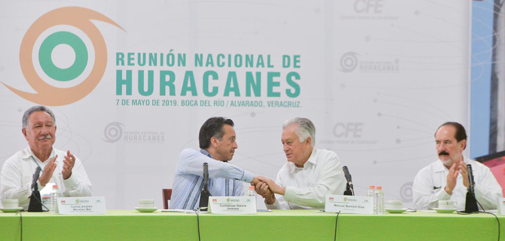 El director general de la CFE, Manuel Bartlett Díaz; el subsecretario de Planeación de la Secretaría de Energía (SENER), Alberto Montoya Martín del Campo; y el gobernador Cuitláhuac García Jiménez, supervisaron las acciones operativas para restablecer el servicio de energía eléctrica en el menor tiempo posible ante daños ocasionados por la próxima temporada de huracanes, que inicia el 13 de mayo en el Pacífico y el 01 de junio en el Atlántico.
