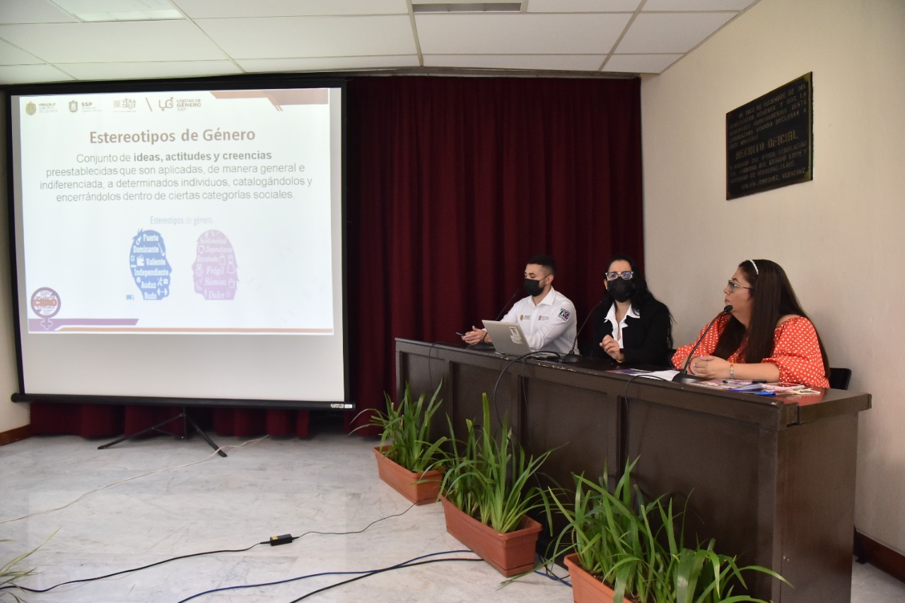 A la sala Irene Bourell Peralta del Palacio Legislativo acudieron la encargada del CEIGDH, Arhely Cuesta Briones, jefes de departamento y personal administrativo, para escuchar las ponencias de Amira Yasvhé Báez Sangabriel, de la Unidad de Género de la SSP, y de Javier de Jesús Palmeros Acuña y Adnaloy Moreno Álvarez, de la