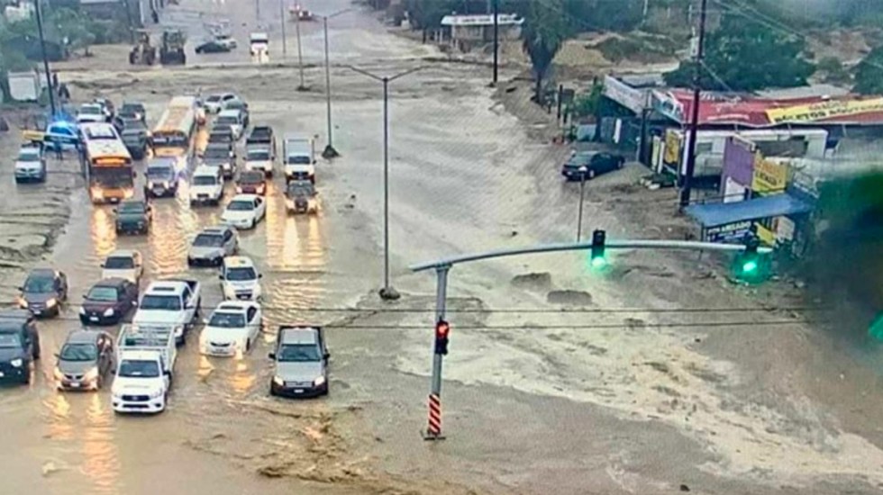 En Baja California Sur, las intensas lluvias que se precipitaron el miércoles dejaron calles inundadas y deslaves.