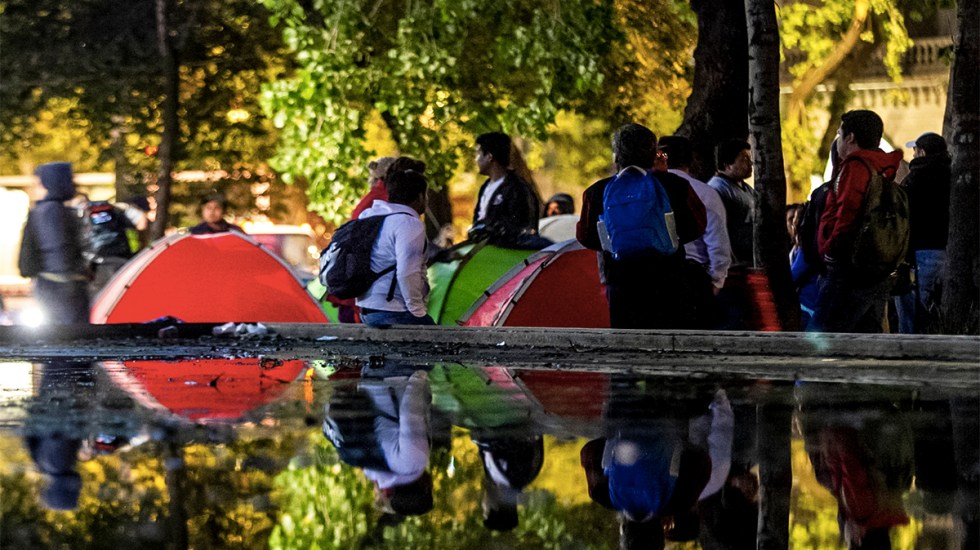 Este martes, la CNTE instaló desde temprano un plantó afuera del Senado de la República, donde por la tarde -en comisiones- se analizarán las leyes secundarias de la reforma educativa. Por esta situación fue cerrada la circulación en la lateral de Paseo de la Reforma, a la altura de la calle Paris, en la colonia Tabacalera.