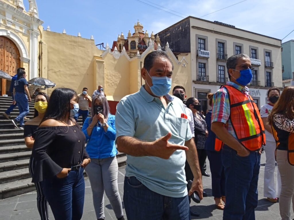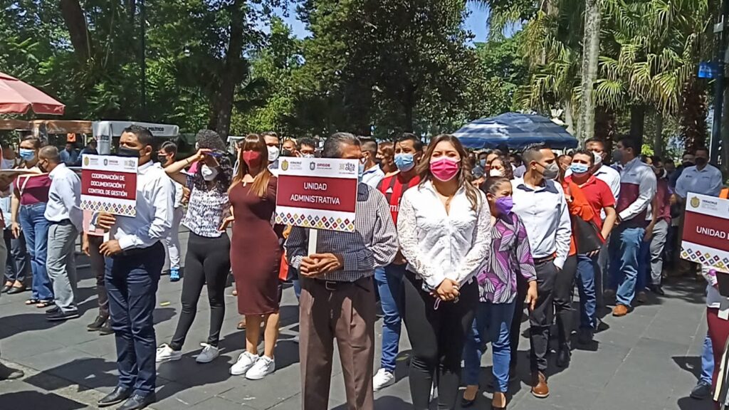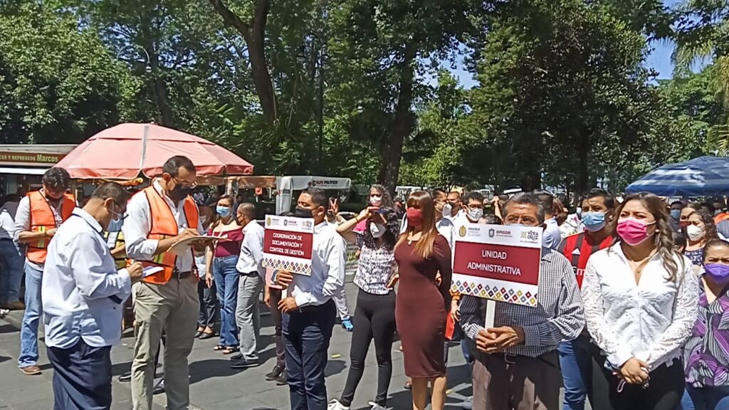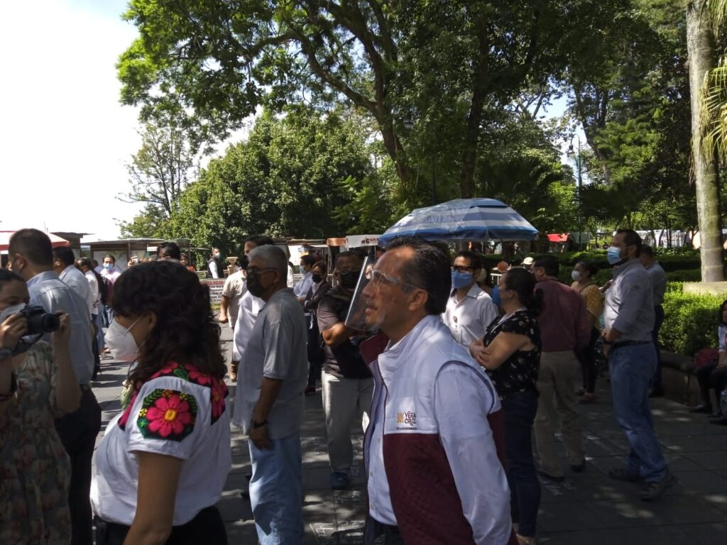 Se observan también líderes como Rolando Ortega Salazar del Sindicato de Trabajadores al Servicio del Ayuntamiento de Xalapa adheridos a la CROC participando con sus representados en plaza Lerdo…