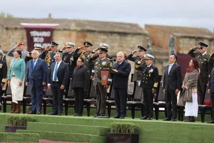 *Perote, Ver., 11 de octubre de 2023.-* Con la presencia del Comandante Supremo de las Fuerzas Armadas, presidente Andrés Manuel López Obrador, la Secretaría de la Defensa Nacional (SEDENA) y el pueblo de Veracruz conmemoraron 200 años de honor, lealtad y patriotismo del Heroico Colegio Militar en su recién rehabilitada cuna y baluarte generacional, la Fortaleza de San Carlos.