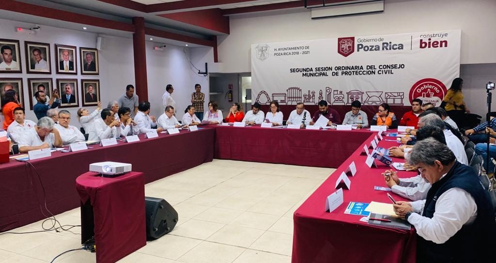 Poza Rica, Ver., 05 de junio de 2019.- Para reaccionar oportunamente ante una situación de emergencia durante la temporada de lluvias y ciclones tropicales, la Secretaría de Salud (SS), a través de la Jurisdicción Sanitaria III de Poza Rica, participó en la Segunda Reunión Ordinaria del Consejo Municipal de Protección Civil.