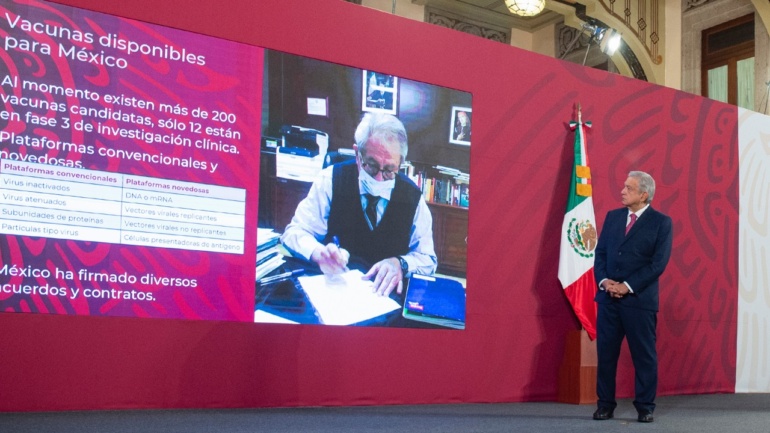 El secretario de Salud, Jorge Alcocer Varela, afirmó que el Gobierno de México garantiza que la vacuna que se distribuya y aplique cumpla con todas las pruebas y características necesarias para proteger la vida y la seguridad de todas las personas.
