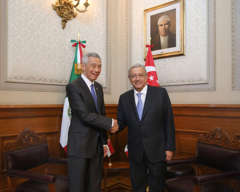 El presidente Andrés Manuel López Obrador recibió al primer ministro de Singapur, Lee Hsien Loong, quien arribó a Palacio Nacional en compañía de su esposa, Ho Ching.