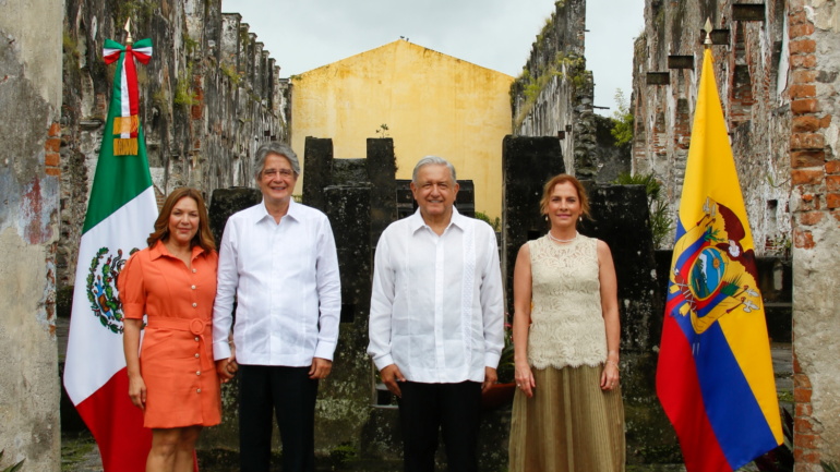 Acompañado de la doctora Beatriz Gutiérrez Müller recibió la visita del presidente de Ecuador, Guillermo Lasso Mendoza y de su esposa, Lourdes Alcívar de Lasso, invitados especiales en este acto.