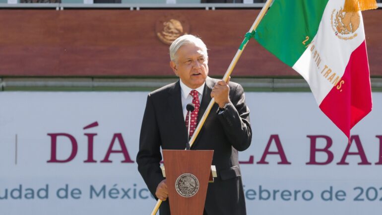 El presidente Andrés Manuel López Obrador encabezó la conmemoración del Día de la Bandera en el Campo Militar Marte de la Ciudad de México.