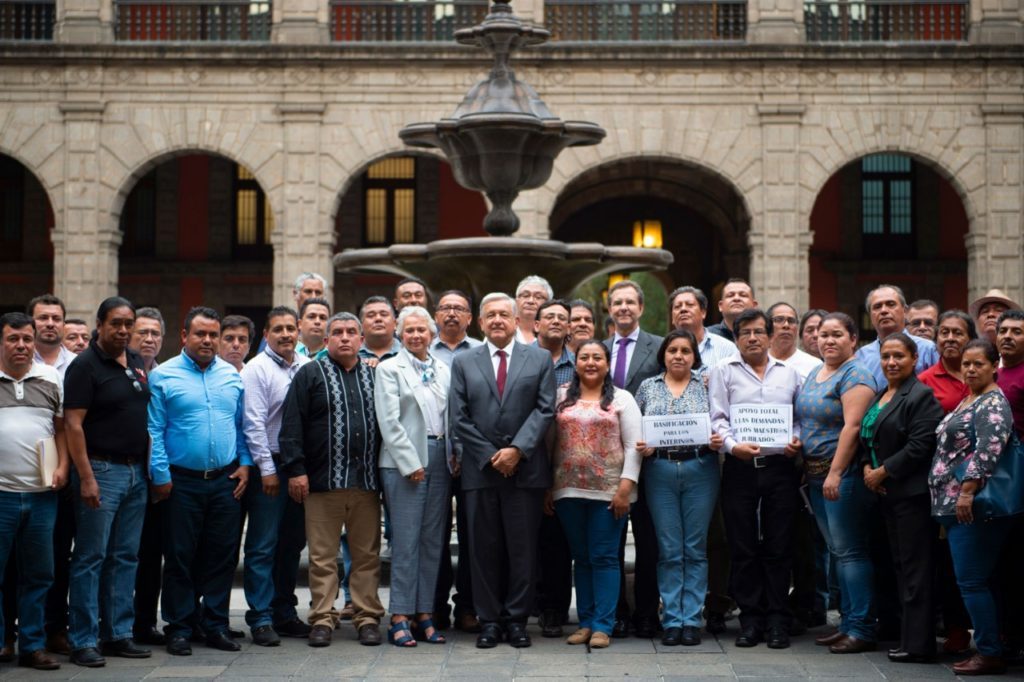 El presidente reconoció al magisterio como indispensable para la causa de la transformación nacional y les asegura que como gobierno “no vamos a retirar la mano que les tendimos cuando nos encontrábamos en la adversidad de la oposición y que no olvidaremos cuanto han aportado ustedes a la defensa de la justicia, la auténtica democracia y la dignidad”.