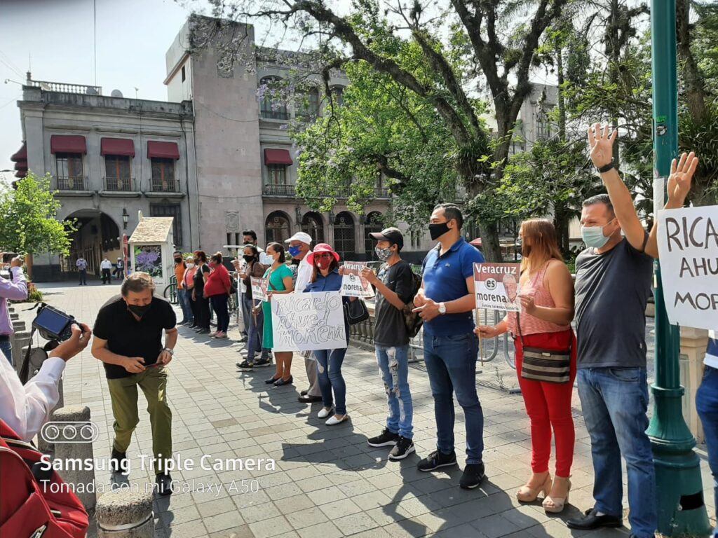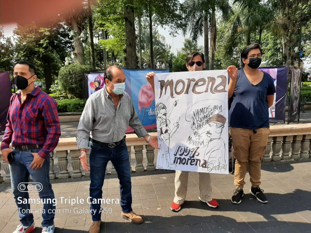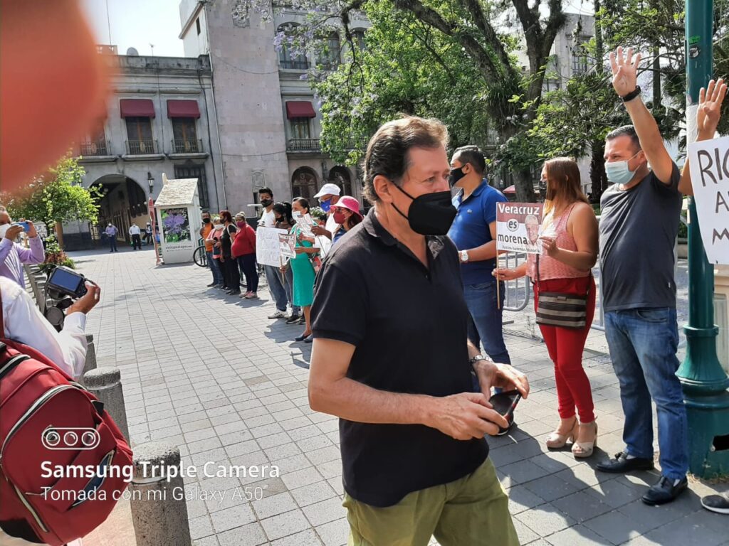 Xalapa Ver. Oscar Garrido Baltazar con un grupo reducido nuevamente se manifiestan en favor del senador con licencia Ricardo Ahued Bardahuil para la alcaldía de Xalapa por morena.