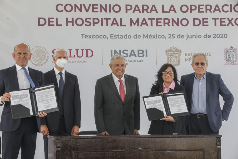 Tenemos que seguir mejorando el sistema de salud pública; que se cumpla el derecho del pueblo a la atención médica y medicamentos gratuitos, afirmó el presidente Andrés Manuel López Obrador al atestiguar la firma del Convenio para la operación del Hospital Materno de Texcoco.