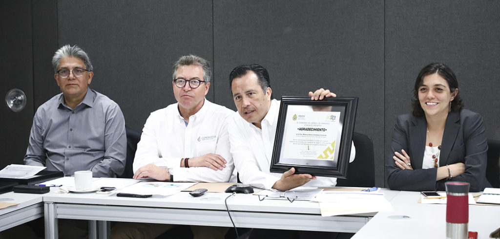 De igual manera, el Gobernador entregó un reconocimiento a la Directora General de CONAGUA, por haber sido factor vital en el acuerdo donde la entidad accedió a los recursos de obras hidráulicas, pues habían sido restringidos por el mal uso de los recursos en pasadas administraciones.