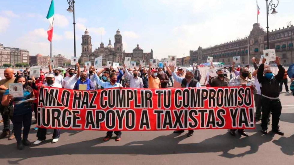 Taxistas de la Ciudad de México protestan este martes tras realizar una marcha sobre Paseo de la Reforma, para exigir apoyos económicos ante la emergencia sanitaria provocada por el coronavirus COVID-19.